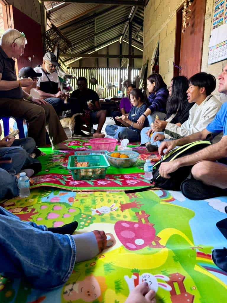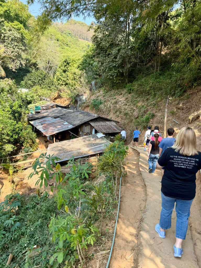The next person we visited was Abba. She is a widow and has nearly nothing, but prepared her home with drinks and snacks for us before our arrival. It was very humbling. (Pic 2) We had a translator with us because the people we visited speak Ahka, the dialect from their tribe, not Thai. In passing, Abba said God Bless You to us and it sounded so lovely that we asked her to repeat how to say that again. She said “Mia puhsa dey” and each one of us repeated that, just in practice. Abba began to cry at the sound of her home full of people saying God Bless You to her in her own language.
